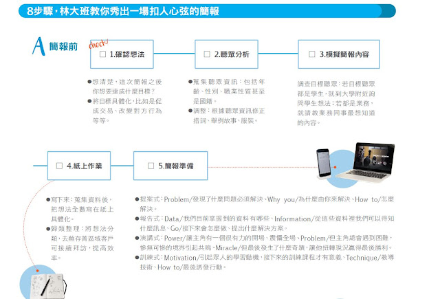 一提到簡報二字,很多人都會急著打開電腦裡的PowerPoint,急著把簡報畫面塞滿。林大班提醒,請先用人腦,再使用電腦。
